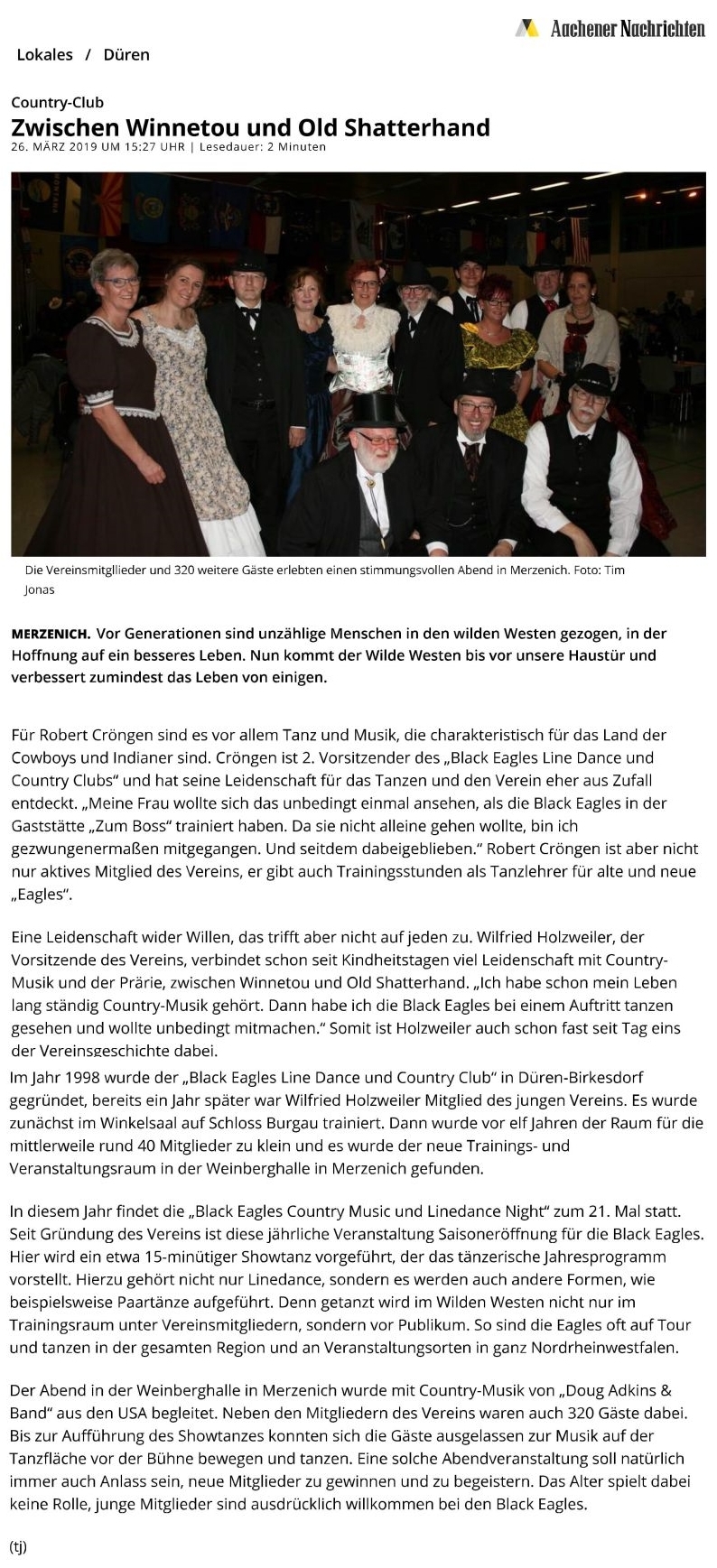 Artikel (26.03) aus den Dürener Nachrichten über die 21te Black Eagles Country Music und Linedance Night . . .